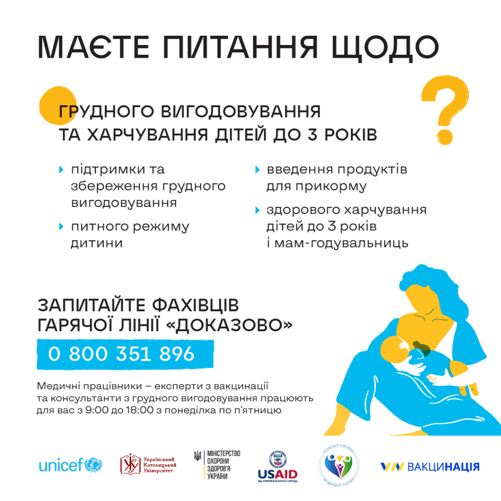 Безкоштовна національна гаряча лінія “Доказово про вакцинацію, грудне вигодовування та харчування дітей до 3 років”